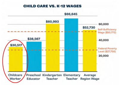 Although labor costs are the main cost in operating a child care business the workforce are notoriously underpaid—in some counties earning just above poverty wages.