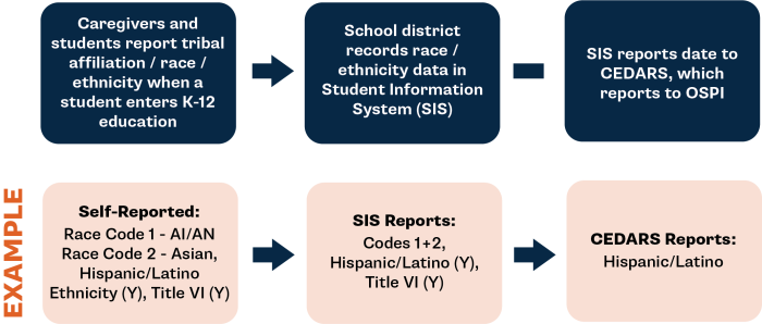 It starts with a form. When a student enrolls in school, they, or their guardians, fill out paperwork on the student’s demographic data. This is recorded at the district-level, where racial and tribal affiliation data are separated into component parts and sent to a state-level data warehouse where it is then prepared for federal reporting.