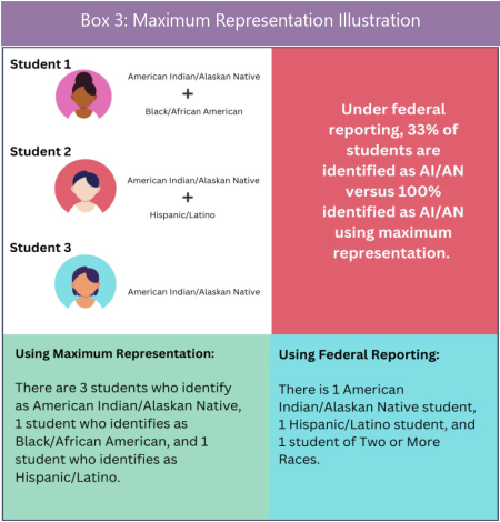 For years, Indigenous education advocates have pushed for alternative data reporting practices, such as Maximum Representation, that allow students to claim all tribal affiliations and ethnic and racial identities in school demographic reporting.
