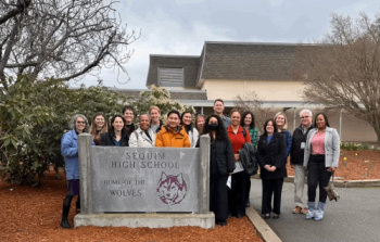 While on the site visit to the Kitsap and Olympic Peninsulas, Washington STEM CEO, Lynne Varner noted the presence of a college counselor from Peninsula College embedded in Sequim High School. She said, “This sends a clear message to students that continuing their education is important—and they can hear directly from college staff about career pathways.”